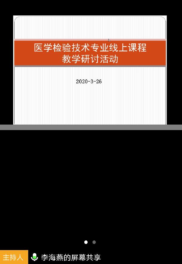 疫情当前,举国抗“疫”,在疫情防控期间,医学检验技术专业全体教师积极响应学校“停课不停教,停课不停学”的号召,精心谋划,科学合理设置课程,自2月24日起,全面开始线上教学工作。然而,对于多数教师来说线上教学是一个新的事物和挑战,为了更好地开展线上教学,2020年3月26日下午14:00至16:00医学检验专业教师利用视频会议的方式开展了教学研讨活动。