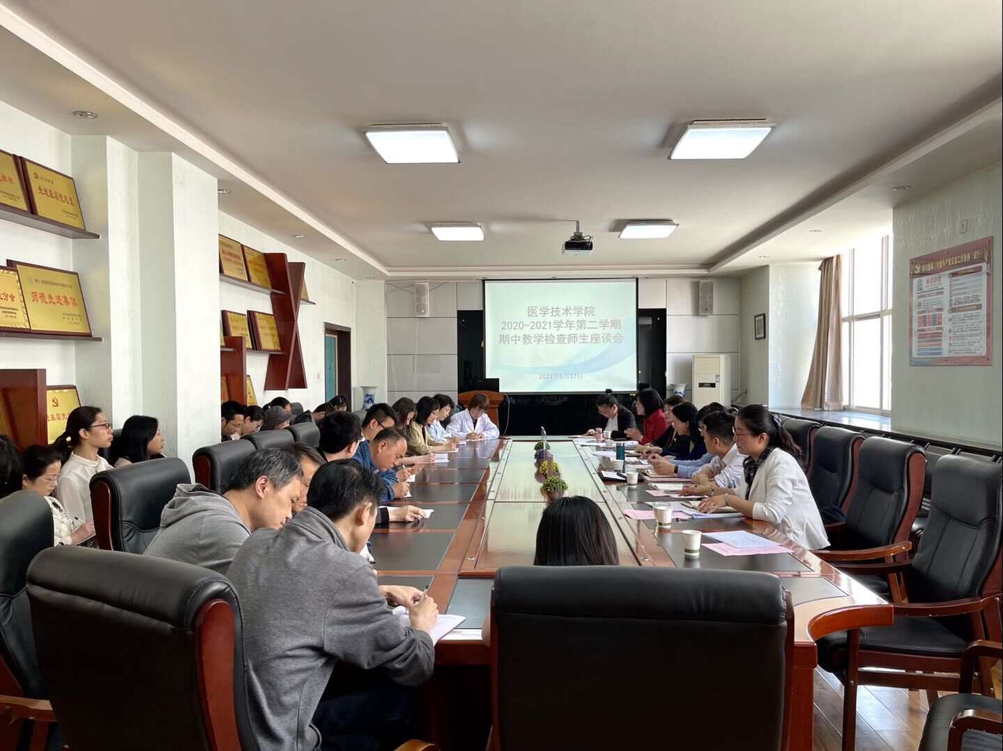 5月17日下午,根据学校关于开展2020-2021学年第二学期期中教学检查工作统一安排,amjs澳金沙门线路首页召开了期中教学检查师生代表座谈会。学校检查组成员副校长姚文柱,校级教学督导王兰教授、教务处苏兴利处长、学工部靳红樱部长出席会议;amjs澳金沙门线路首页院长孙静,教师、学生代表,各教研室主任、实验中心负责人,教学科、学生科负责人参加了会议。会议由副院长王莉主持。