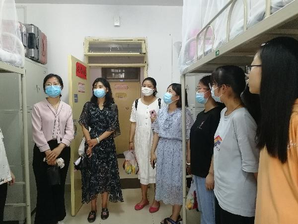 2020年6月24日中午,值此端午节到来之际,amjs澳金沙门线路首页党总支副书记韩文霞、学生科科长魏慧、团总支书记王心及辅导员张妍、周瑾昱前往学生公寓走访慰问,为同学们带去了学院精心准备的糕点,送去了诚挚的节日问候和关怀。