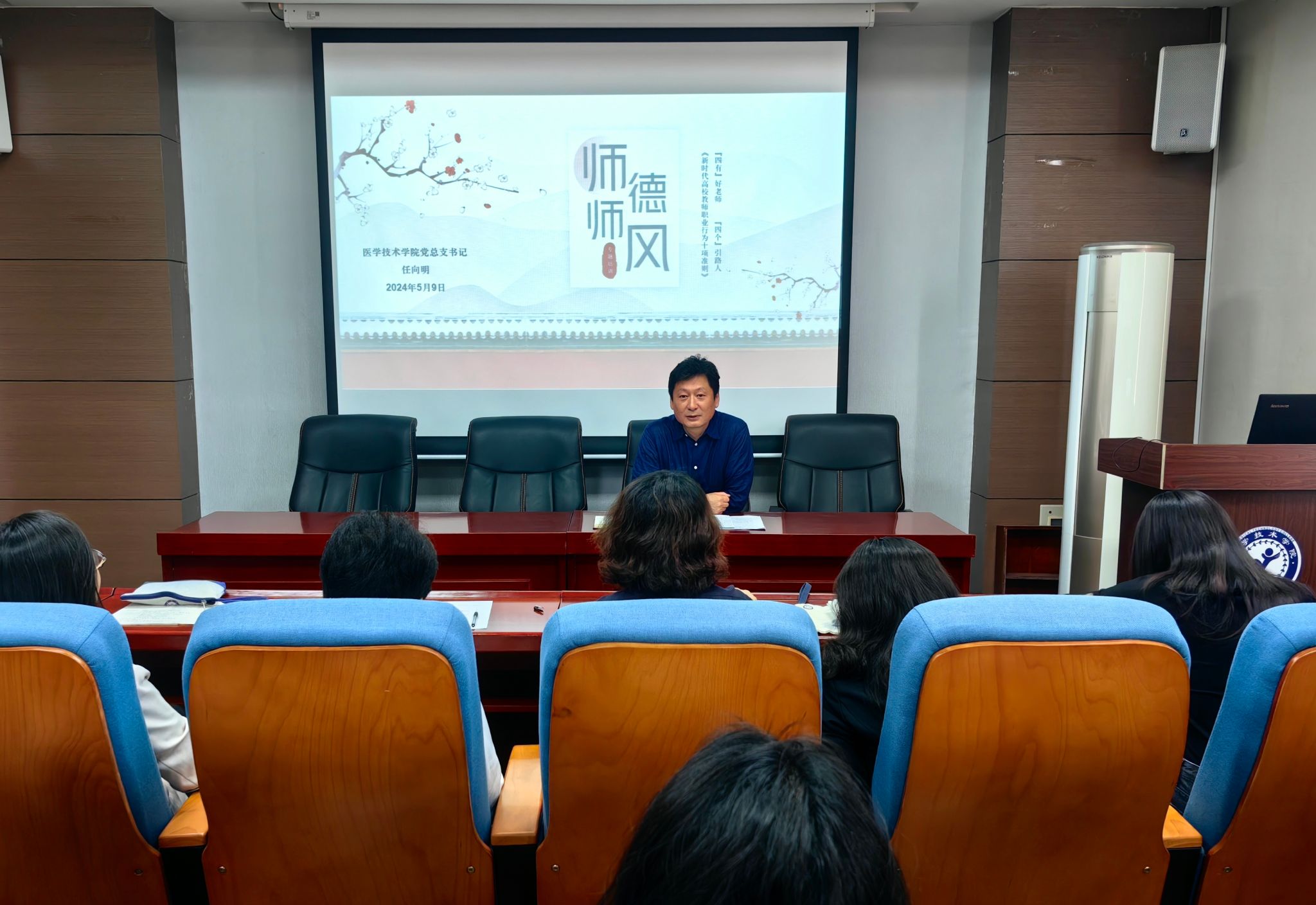 为扎实开展党纪学习教育,进一步加强师德师风建设,帮助学院教师深入理解《新时代高校教师职业行为十项准则》,明确职业规范,提升师德素养,坚守培根铸魂信仰。5月9日,amjs澳金沙门线路首页在学院报告厅开展《新时代高校教师职业行为十项准则》解读暨师德师风专题培训,此次培训由学院党总支书记任向明主讲,院长孙静、副院长王莉及全体教师参加培训。