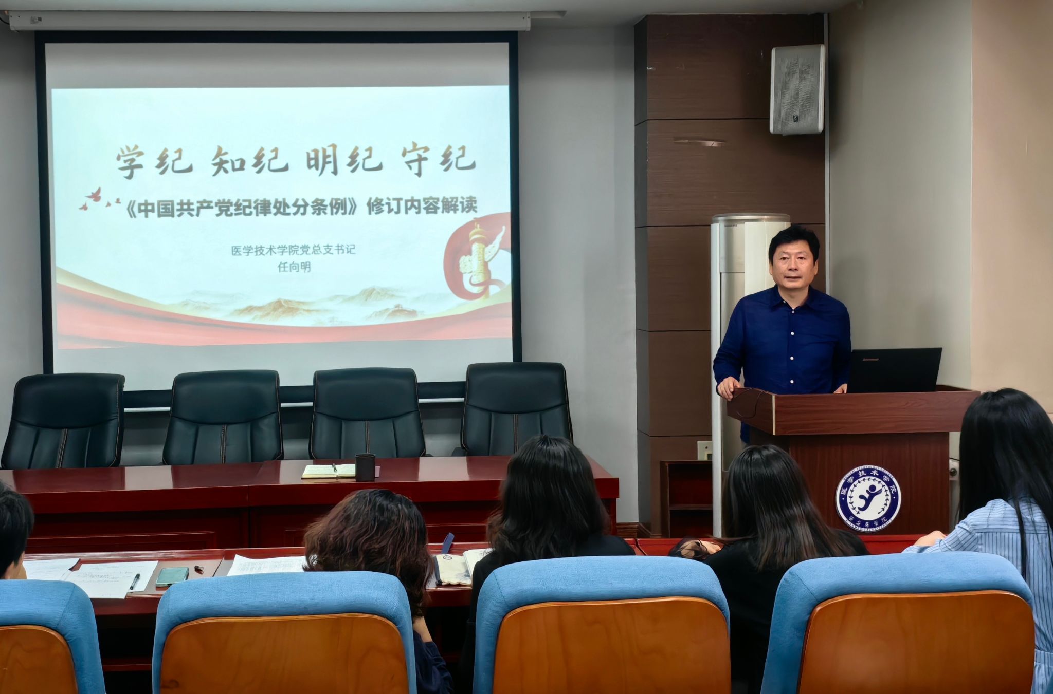会上,任向明书记分享了学习《条例》心得和理解感悟,他从修订《条例》的重要意义、修订的主要内容及如何贯彻落实三个方面进行全面讲解,并对新修订的《条例》政治纪律、组织纪律等部分作深入解读,他指出,《条例》是管党治党的重要基础性法规,在党的纪律规矩中,政治纪律和政治规矩是最根本、最重要的,全体教师要始终做到统一思想、统一意志、统一行动,发扬“钻”的精神,领会丰富内涵,吃透精神实质,将学习《条例》和履行好岗位职责紧密融合,在日常工作生活中规范自己的一言一行,真正使学习党纪的过程成为增强纪律意识、提高党性修养的过程。