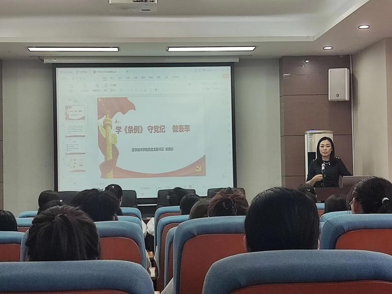 徐景彩结合学生党员实际,从《条例》修订背景、特点及基本框架,党纪学习教育目标,党员、党组具体党纪处分等方面做了详细解读。为提升此次党纪学习教育成效,她对全体学生党员学习提出三点具体要求,一是学思践悟自觉学。党员个人要原原本本、原汁原味学《条例》,支部要经常开展集体研讨,解惑答疑,帮助全体党员真正做到“学纪、知纪、明纪、守纪”。二是要学以致用做表率。大学生党员是高校学子中的先进代表,始终是高校学生群体中的“政治标兵”、“学习榜样”、“行动标杆”,全体党员要结合日常规范要求,将党纪党规内化于心、外化于行,切实起到表率作用。三要自我革新求发展。针对身份认知度低、要求有松懈、服务宗旨践行不到位的实际情况,全体党员以此次党纪学习教育为契机,正视问题,积极进行自我检视,从点滴做起,自觉抵制不良风气、率先垂范,全面提升自我发展。