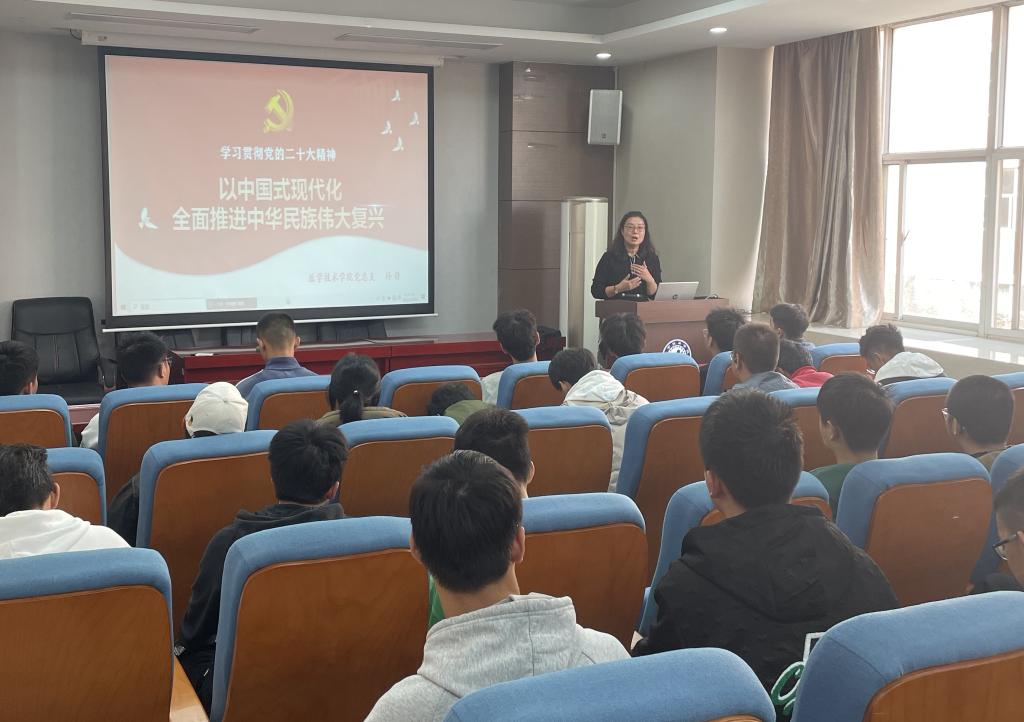 为深入学习贯彻党的二十大精神,进一步引导amjs澳金沙门线路首页师生党员自觉做习近平新时代中国特色社会主义思想的坚定信仰者和忠实践行者。10月18日,amjs澳金沙门线路首页院长孙静在学院报告厅讲授题为“以中国式现代化全面推进中华民族伟大复兴”的专题党课,学院师生党员参加了此次党课学习。