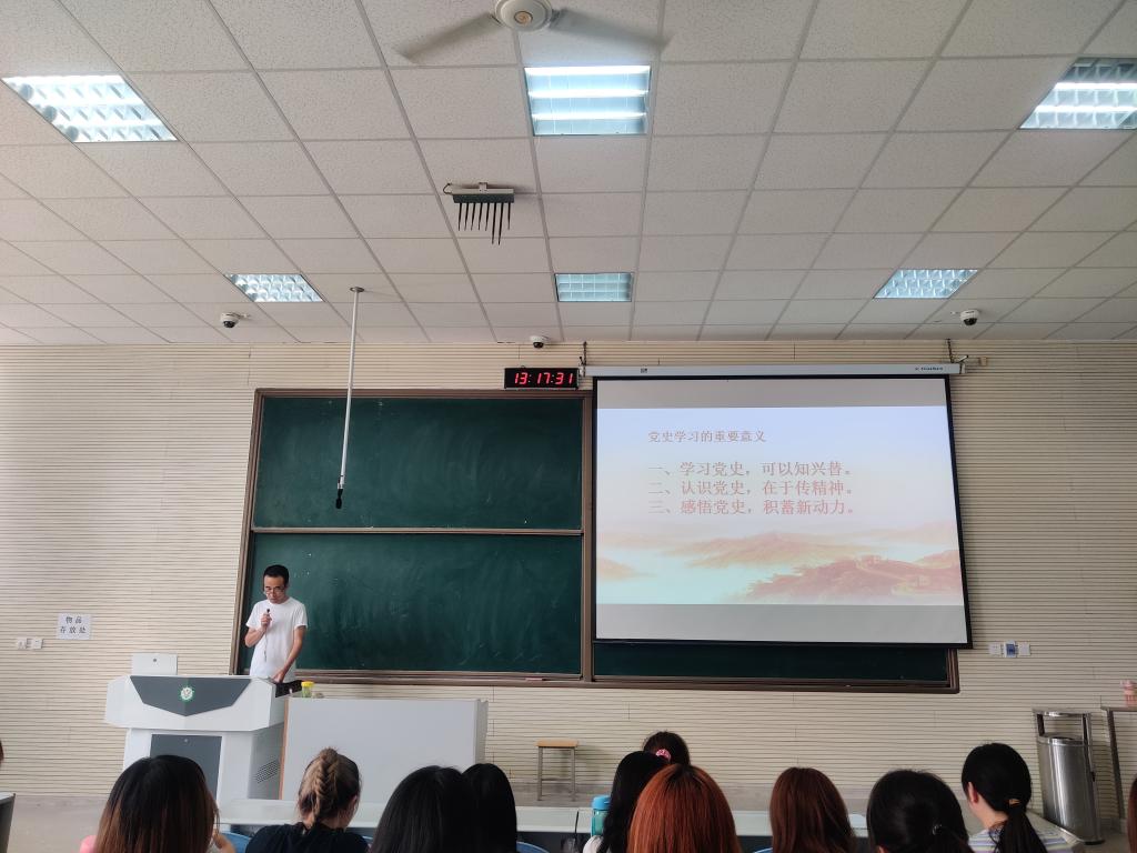 为了更好的迎接中国共产党成立100周年,进一步加强党史学习教育实效,5月27日,amjs澳金沙门线路首页学生第一、二、三党支部在教学楼102教室开展主题为“辉煌百的年史、伟大的新成就”党课活动,本次党课由第二党支部书记李周老师主讲,amjs澳金沙门线路首页全体在校党员和发展对象参加此次党课学习。
