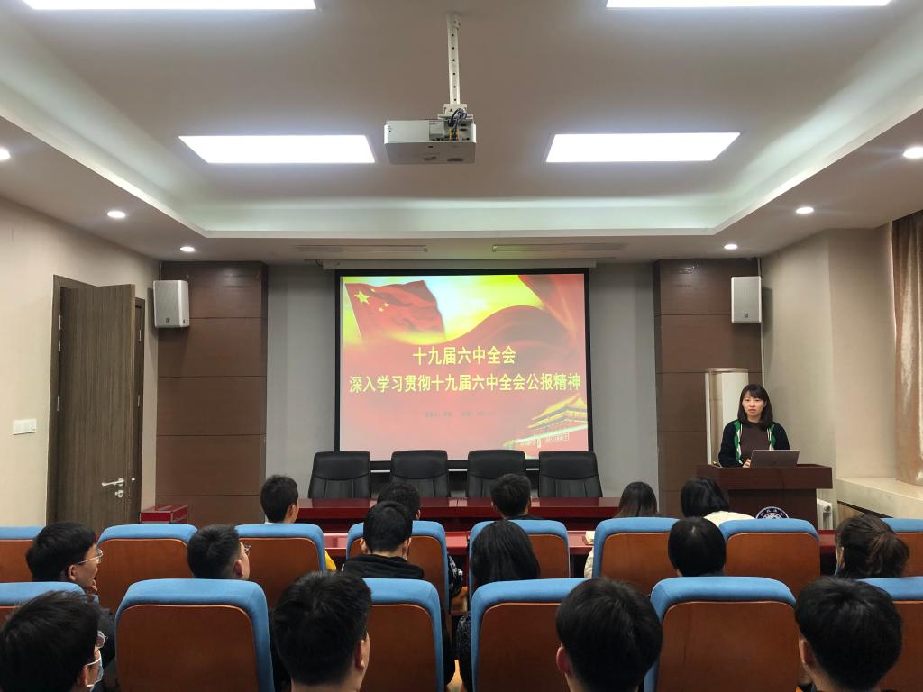 为深入贯彻党的十九届六中全会精神,12月1日,amjs澳金沙门线路首页党总支在学院报告厅开展了“十九届六中全会精神”学习专题党课。党课由学生第一党支部书记李佳主讲,学生第一党支部全体学生党员参加了党课。