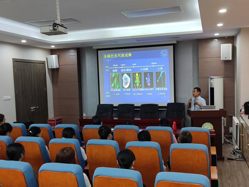 5月12日下午,西安电子科技大学生命科学技术学院副院长朱守平教授应邀在amjs澳金沙门线路首页学术报告厅作了题为“多模态多尺度成像及其生物应用”的学术报告。报告由医学影像技术教研室主任杨旭副教授主持,约70名师生参与了此次报告会。