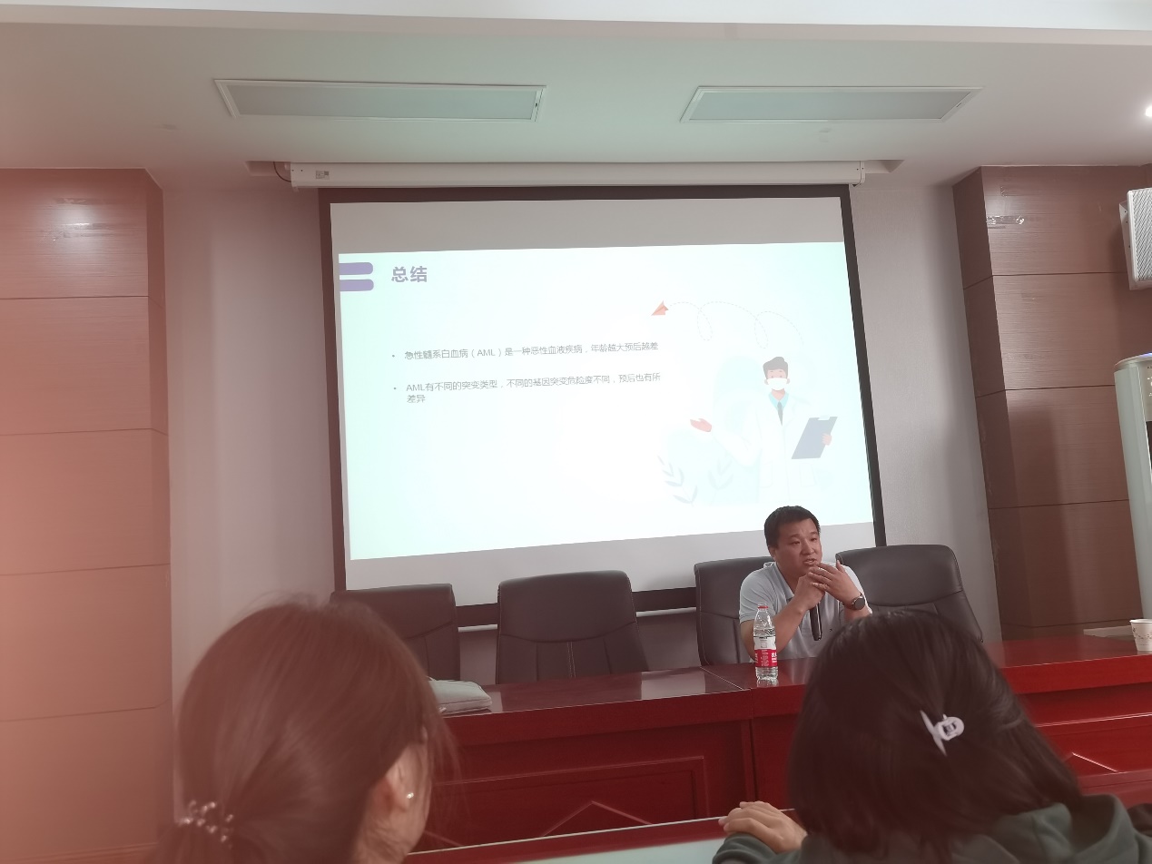 高山主任就急性髓系白血病的概况,对急性髓系白血病新的分型标准, WHO第五版血液肿瘤诊疗指南做了详细介绍。并对形态学、免疫学、细胞遗传学和分子生物学诊断方法在白血病诊断方面的优缺点做了客观评价。最后,重点强调了对于一些有明确基因突变的血液病,尽早开展基因检测,选择合适的靶向药,尽快展开有效治疗,打破治疗瓶颈。通过本次讲座广大师生对急性髓性白血病的新的分型标准、新的检测方法和新的治疗药物提高了认识,拓展了视野。
