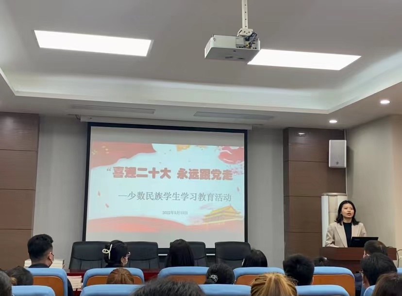 5月13日,学工部组织少数民族学生代表在amjs澳金沙门线路首页报告厅认真学习习近平总书记在庆祝共青团成立100周年大会上的重要讲话精神,少数民族学生骨干、辅导员专干、新疆内派教师60余人参加了学习,学习由学工部安顺凤老师组织,amjs澳金沙门线路首页少数民族专干袁瑊琳老师主持。