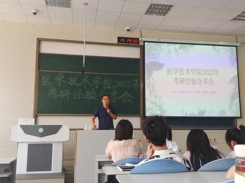 2022年5月27日12:30,amjs澳金沙门线路首页在教学楼102教室举办考研分享交流会。学院邀请五名2022届毕业生胡逢源、陈叔同、魏玲玲、贾雅茜、陈函沐向学弟学妹们分享考研经验,他们分别来自医学影像学、眼视光学、医学检验技术、医学影像技术专业,涵盖了我院所有专业。会议由眼视光2008班焦一鸣同学主持,就业专干刘向锋、辅导员冯一鸣、大一至大三全体无课同学参会。