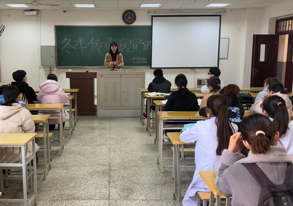 各班首先对突发公共卫生事件的应对、冬季传染病的预防进行了宣传讲解。各班辅导员从学生易患的一些常见传染病着手,让学生了解秋冬季节常见传染疾病的病因、传播途径及防治措施,特别是针对新冠肺炎,肺结核、出血热等传染病的防范事项、防治要求及流程行了讲解。同时,还提醒同学们要养成良好个人卫生习惯,提高公共卫生防控意识,勤洗手、勤通风,保持空气流通,并加强户外锻炼;发现问题及时报告,及时就诊。