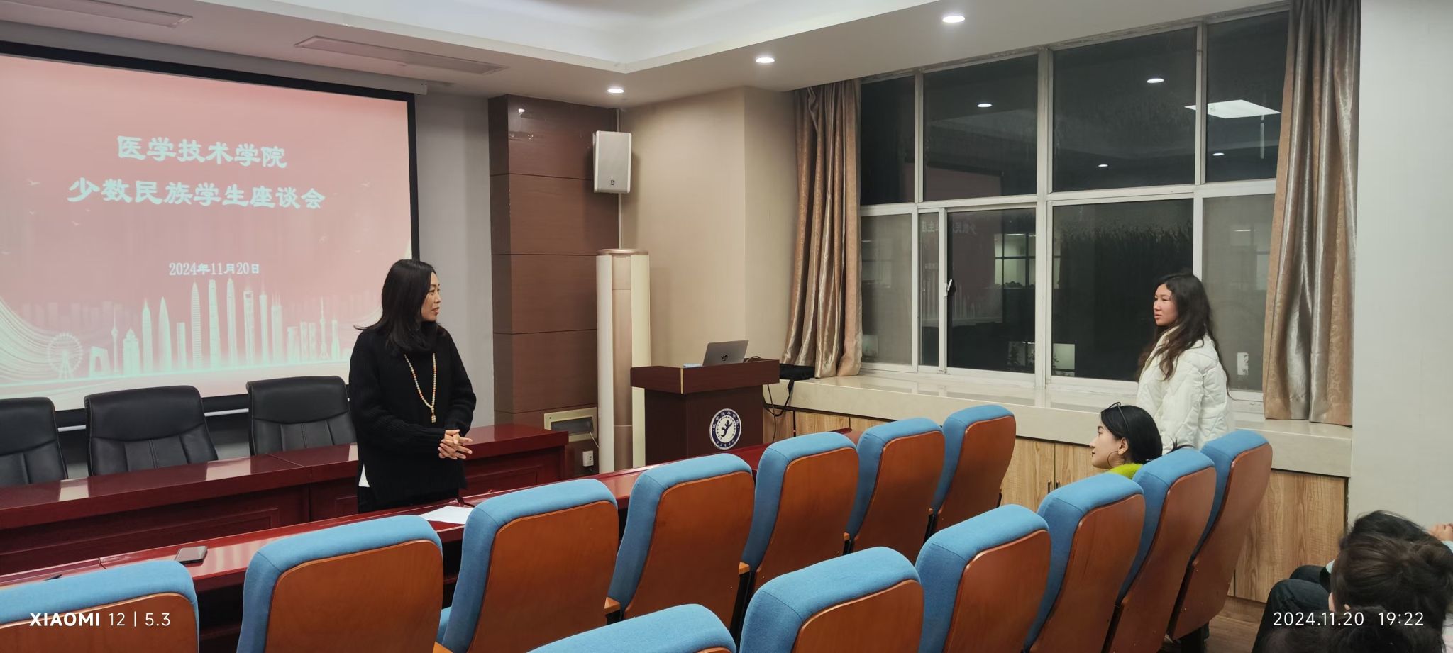 为加强民族团结,进一步提升少数民族学生教育管理服务质量,助力学生成长成才,11月20日晚,amjs澳金沙门线路首页在学院报告厅组织开展了少数民族学生座谈会。学院党总支副书记徐景彩、少数民族学生管理专干刘向锋以及全体在校少数民族学生参加了座谈。