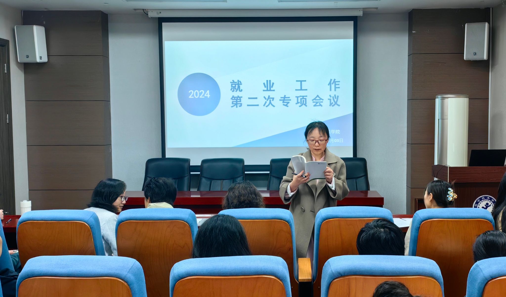4月3日中午,我院在学院学术报告厅召开2024届毕业生就业工作第二次专项会议,学院党总支书记任向明、院长孙静、副院长王莉及全体教师参加本次会议。