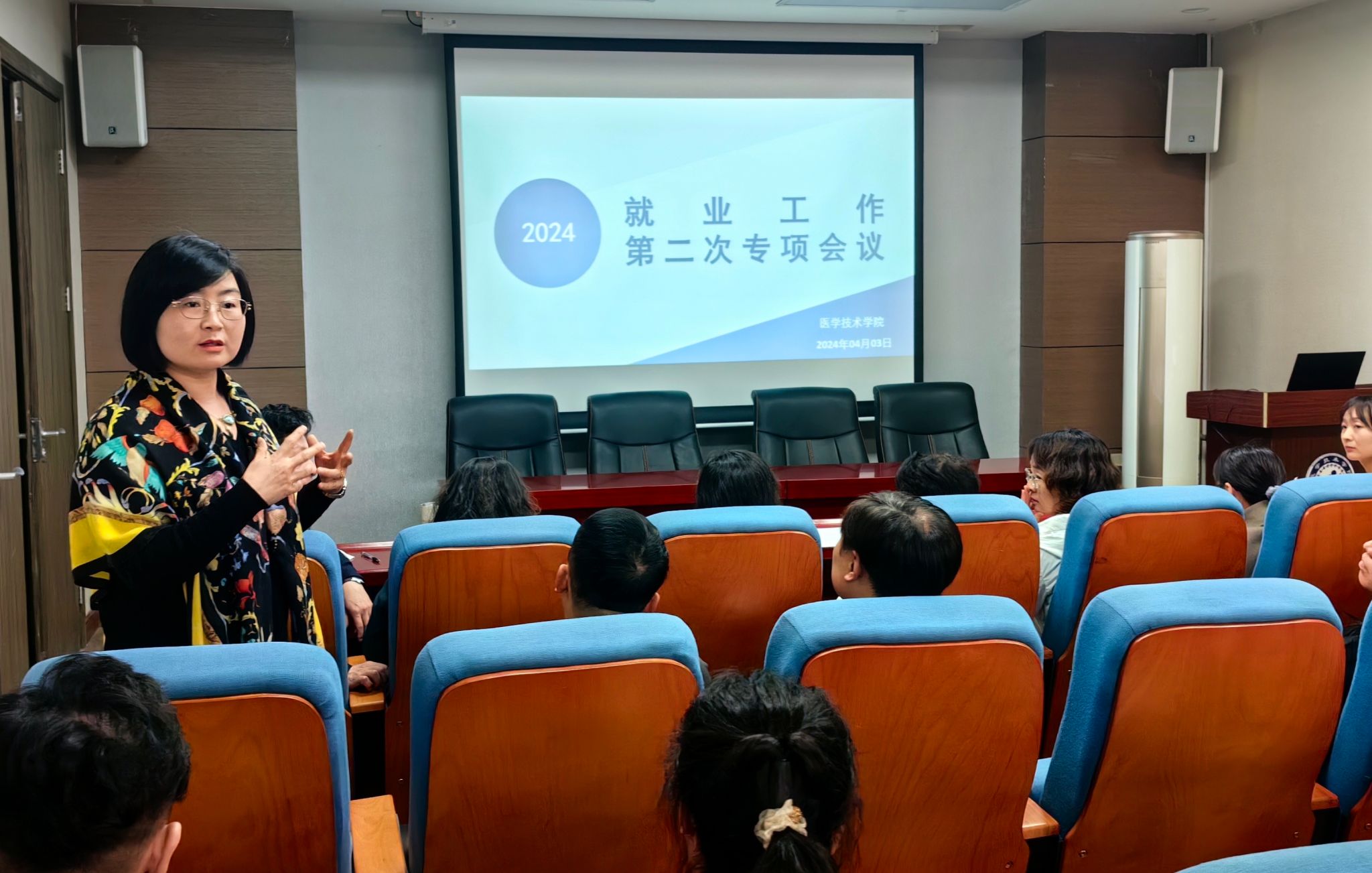 会上,医学影像学、医学影像技术、眼视光学、医学检验技术专业负责人段云燕、杨旭、杨扬、李海燕和学生科科长刘慧就上周就业工作进展情况进行汇报。首先,各专业负责人汇报了2024届毕业生基本情况,根据学生就业进展分为四类:已签约、研究生已录取或调剂中、等用人单位招录签约中、积极主动求职中、消极求职或二战。其次,客观分析了行业形势和岗位现状,学生的求职意向等现象。随后,刘慧科长汇报了上周开展的就业动员大会、宣讲招聘会的开展、参与情况以及录取结果,主动联系并跟进用人单位招聘进展以及访企拓岗的情况,与学生沟通交流的技巧等。