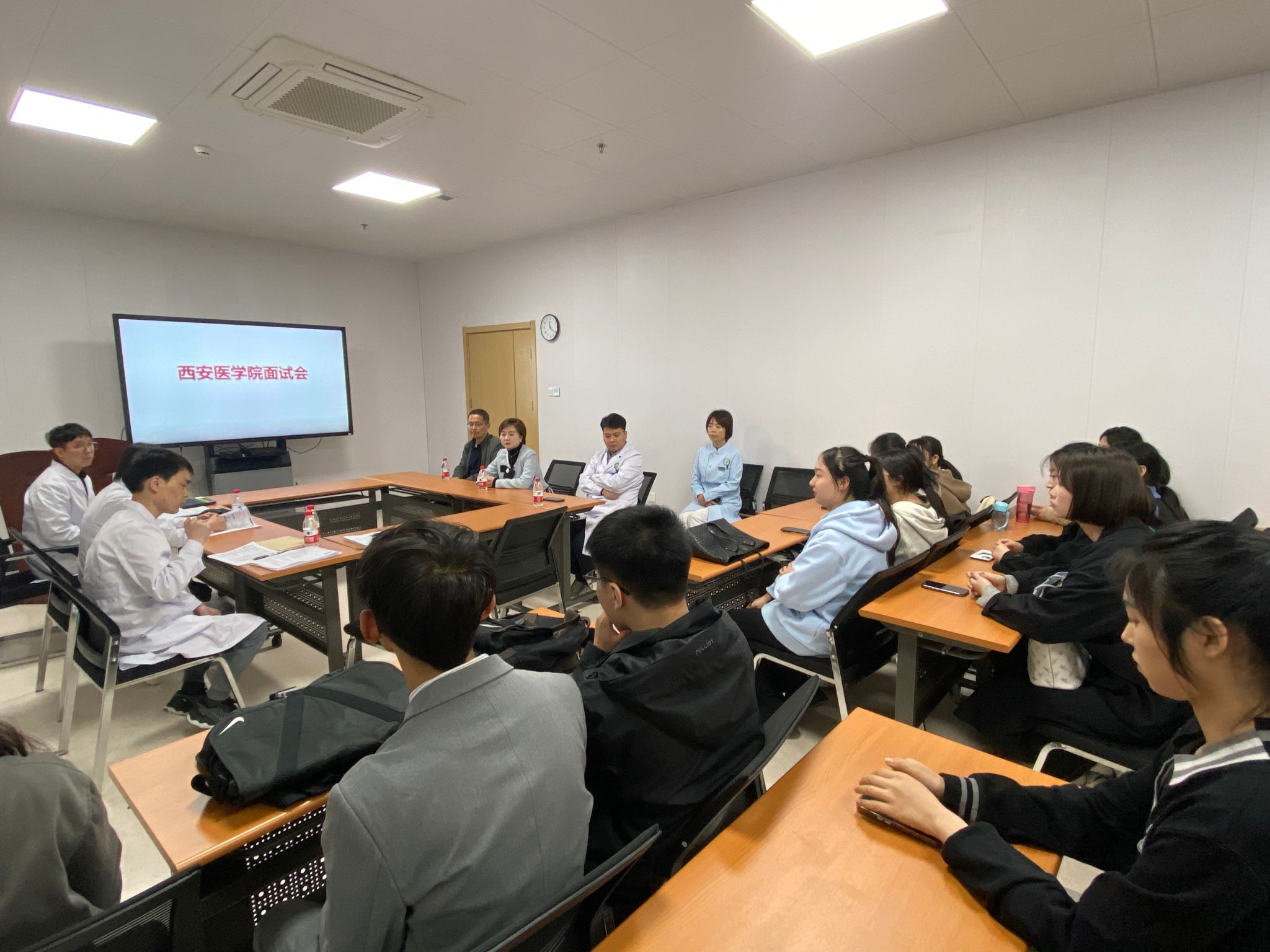 21日招聘会上,秦越主任就西安大兴医院及影像科室基本情况进行介绍,医院为三级甲等医院,是大兴新区的区域性医疗中心,影像科现拥有国际高端的影像设备多台。随后33名毕业生进行逐一现场面试,了解应聘毕业生的岗位认知、专业基础、语言表达能力及思辨能力。同时,刘向锋和李卓遥老师对现场应聘学生进行简历修改指导、就业思路指导、分析当下就业、考研形势,鼓励学生多尝试、多主动,积极主动就业。随后进行答疑环节,应聘学生就薪资待遇、签约时间、规培、进修、工作量、人才培养等方面提问,秦越主任逐一回答学生所关心的问题。