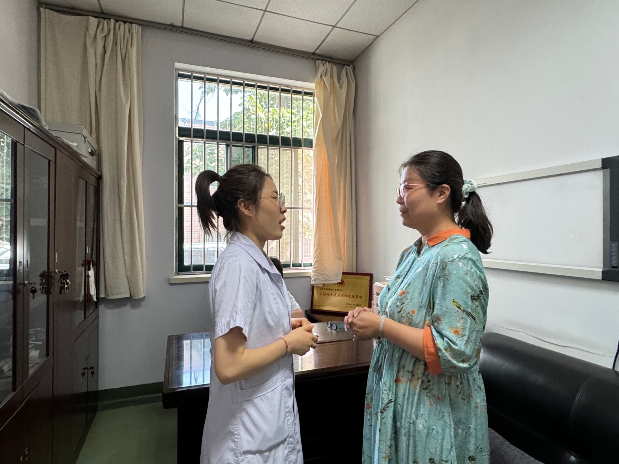 走访中,孙静看望并关心校友蔡晓莉的工作、学习、生活情况,鼓励她要积极发挥优秀校友“传、帮、带”作用,在工作岗位上再创佳绩。双方表示此次座谈颇有收获,今后将加强交流合作,并就学生实习工作交换意见。