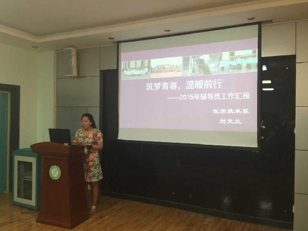 为切实加强我系辅导员队伍建设,客观、公正地评价辅导员一年来的工作,充分调动辅导员工作积极性,激励和促进其不断提高政治素质和业务能力,认真履行岗位职责,创造性地开展工作。2015年6月11日上午八点半,医学技术系在系部会议室召开了2014-2015学年辅导员述职考核工作会。学生处副处长李伟、医学技术系党总支副书记耿潇潇、党政办公室主任任熙玲、学生科长吕宝、团总支书记魏慧以及全系16名专兼职辅导员参加了会议。会议由吕宝同志主持。