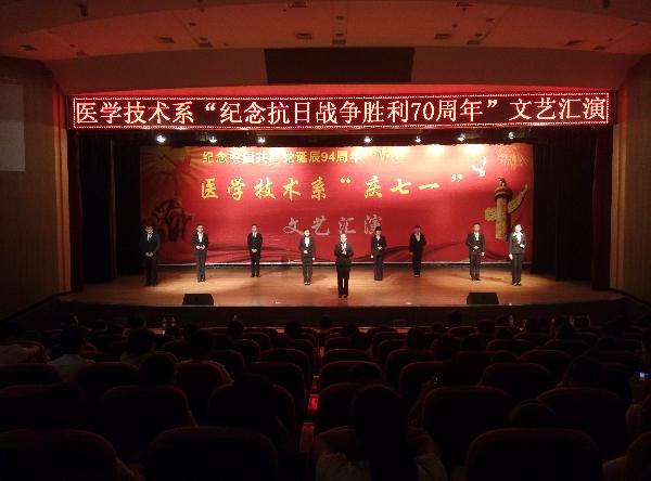 2015年7月7日,医学技术系2014—2015学年表彰大会暨纪念抗日战争胜利70周年文艺汇演在未央校区学术报告厅隆重举行。出席本次会议的领导有西安医学院副院长黄保强、学生处副处长李伟、团委书记王燕、医学技术系党总支书记耿潇潇、医学技术系主任孙静。会议由医学技术系团总支书记魏慧主持。