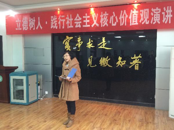 医学技术系党总支从11月10日至12月10日开展了为期一个月的“立德树人·践行社会主义核心价值观”主题征文和演讲比赛活动。本次活动得到了全系教师党员的积极响应,大家踊跃投稿,积极参与。经过动员、投稿、预赛,最终选出九名老师参加了决赛。