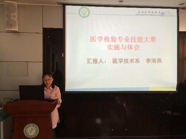 检验专业技能大赛负责人李海燕老师做汇报
