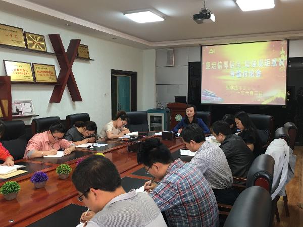 会议首先是党总支耿潇潇副书记认真组织学习了有关坚定信仰信念、增强规矩意识、做合格教师的相关内容与要求。接着,与会教师围绕“两学一做”重要性,如何在教师中扎实开展“两学一做”工作等问题展开了讨论。大家一致认为:“坚定教师终身从教的信念,增强教师的规矩意识”是做一名合格党员教师的前提与基础。