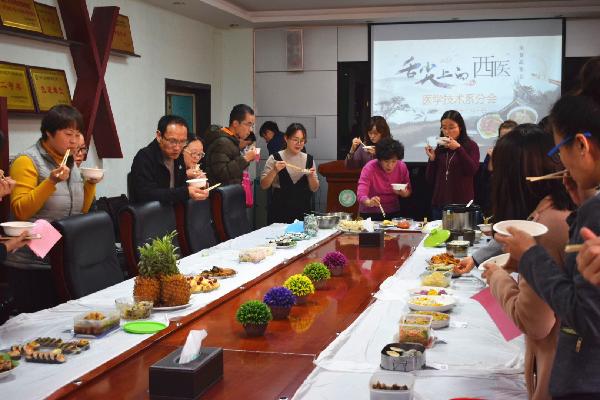 (工会 医学技术系分会)一道色香意味形俱佳的菜肴,一份巧手烹制者的浓浓情义,一场别开生面的美食品鉴,12月1日午餐时间,立言楼医学技术系会议室人头攒动、欢言笑语,会议桌台面上形态各异,美味飘溢,30余种菜肴如约成席,似花般地点缀了长方形会议桌,室外的清冷一扫而光,浓烈温馨在室内凝聚,时钟指向12点半,校工会副主席白万晓宣布,舌尖上的西医——美食品鉴会开始。