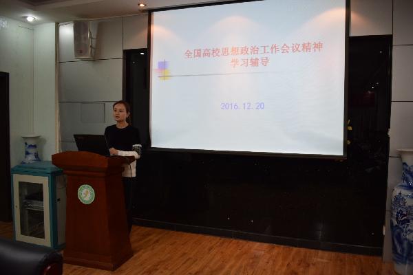 接着,吕宝老师和韩文霞老师进行了发言。吕宝老师说,思想政治工作一定要做出办公室、走进学生中,要拉近和与学生间的距离,通过老师的话语权争取思想政治教育的主动性。韩文霞老师说,专业课老师要通过理论实践教学、创新创业教育、技能大赛等环节深入思想政治教育,要致力于培养“六有”大学生,激扬出他们的“青春梦”。与会人员也结合具体工作,就如何贯彻落实全国高校思想政治工作会议精神展开了热烈的讨论。