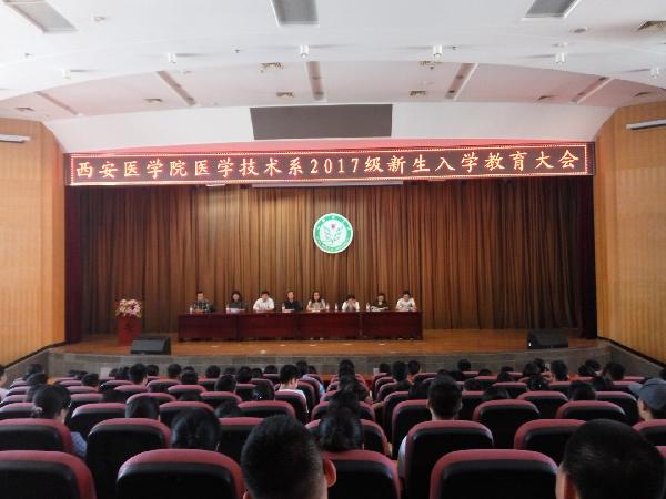 为了使同学们更好的了解大学,尽快适应大学生活,9月12日中午1点半,医学技术系在校学术报告厅召开2017级新生入学教育大会。参加大会有系党总支副书记耿潇潇、系副主任孙静、党政办主任霍健、学生管理科科长吕宝、系团总支书记魏慧、新生辅导员李周、周瑾昱、杨希以及2017级351学生。大会由吕宝老师主持。