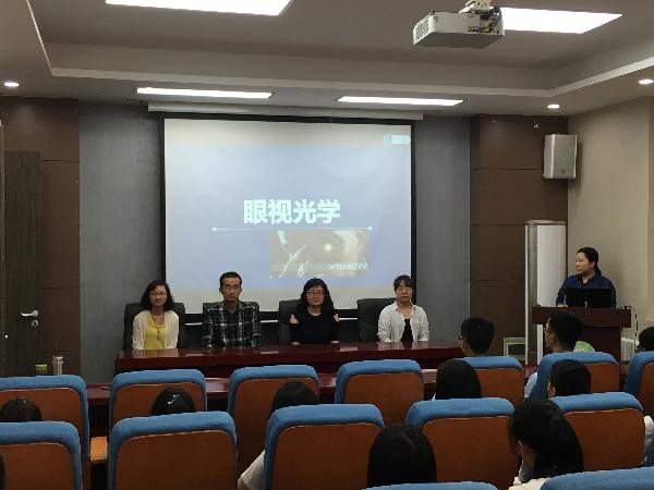会议由眼视光专业负责人王莉老师主持。首先,眼视光教研室刘文兰老师从专业特色、就业情况、教学成果、师资队伍、学生参加学科竞赛情况、对学生的培养要求等六个方面对专业进行了解读。随后的师生互动气氛积极活跃,老师们就学生们提出的问题一一进行了细致、耐心的解答,老师们提到眼视光专业是一个年轻的学科,机遇与挑战并存,同时鼓励学生们端正学习态度、注重科研精神和创新精神的培养,努力提高专业素养,做一名合格的视光师。