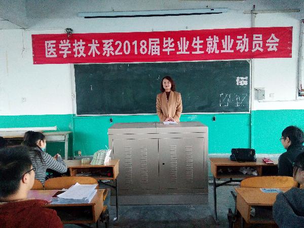 为了引导和帮助毕业生树立正确的择业观和就业观,12月3日上午10点,医学技术系在含光校区召开了2018届毕业生就业动员会。系党总支副书记耿潇潇,学生科长吕宝、所有2018届毕业班辅导员及400余名毕业生参加了动员会,会议由学生科长吕宝主持。
