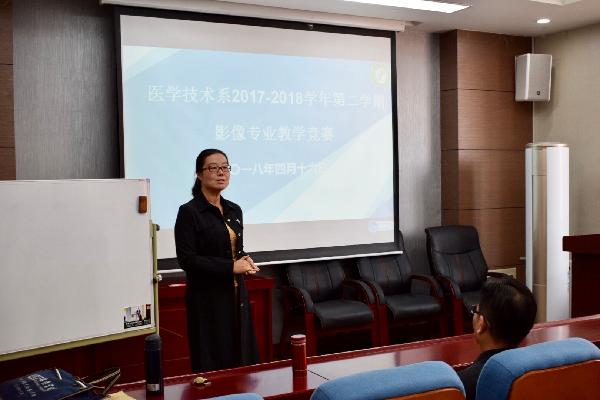 医学技术系为进一步促进影像专业青年教师教学质量和教学水平的不断提高,备战全国医学影像专业发展高峰论坛暨第二届全国医学影像专业青年教师基本功竞赛,医学技术系于2018年4月16日举办2017-2018学年第二学期影像专业青年教师教学竞赛。应邀担任竞赛评委的有:校级教学督导曹励民教授、系主任孙静副教授、影像专业负责人段云燕副教授、检验专业负责人李海燕副教授、医学免疫与病原教研室主任武永红副教授、医学影像技术教研室主任杨旭老师、物理教研室主任王成老师。本次竞赛由医学技术系教学科科长韩文霞副教授主持。