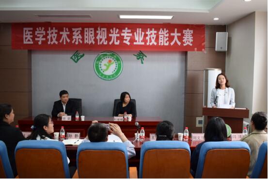 医学技术系为提高学生的实践能力和团队精神,激发学生的学习热情,以赛促学,以赛促教,于5月9日下午在立言楼三楼眼视光实训中心举行了眼视光专业技能大赛。出席大赛的领导有西安医学院党委委员、组织部部长万家峰,医学技术系主任孙静,医学技术系党总支副书记耿潇潇,医学技术系党总支副书记吕宝。本次大赛还邀请了陕西省人民医院眼科主任张坚、西安晶明公司视光部杜继娟主任与我校眼视光专业刘文兰老师、闫瑾老师共同担任比赛评委,杨扬老师主持开幕式。
