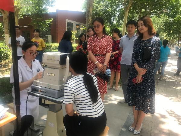 本次活动分为三个环节。第一个环节是眼保健及相关产品服务,医学技术系教师在教工食堂和实验楼连廊下为全校师生进行视力检查、电脑验光、基础视功能检查、镜架调整和镜片清洗等义诊服务活动,活动吸引了全校师生的踊跃参与,共检查164人。