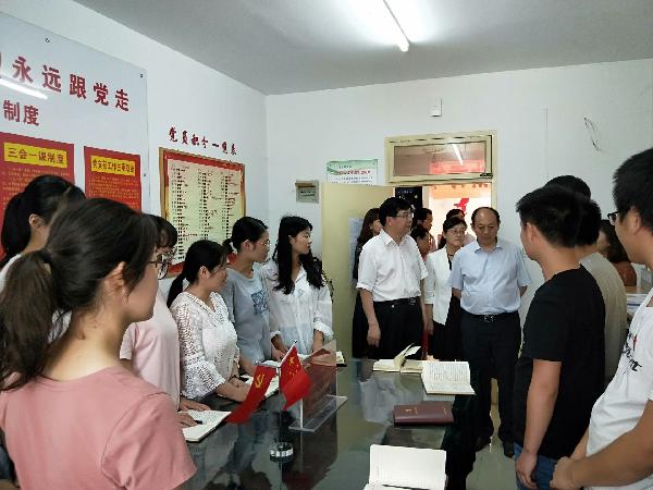 6月20日下午,董小龙书记来到我校生活区调研学生工作“五进公寓”工程开展情况。他先后走访了amjs澳金沙门线路首页学生公寓,他仔细听取相关老师关于“五进公寓”工作情况的介绍,认真查阅相关资料。董小龙书记调研时,恰逢学生第三党支部正在举办《梁家河》读后感交流会和学生支部微党课活动,他与同学们亲切交谈,并与大家一起分享了阅读《梁家河》《习近平七年知青岁月》、学习习近平总书记在北京大学师生座谈会上的重要讲话精神的心得体会。现场气氛轻松融洽,学生们畅所欲言,纷纷发表自己的认识和看法。董书记勉励学生,要以青年习近平为榜样,广泛阅读、博览群书,不断提升思想境界,找到人生航标。读书的意义在于体悟和付诸实际行动,要从感性认识上升为理性认识。希望同学们通过学习,把习近平总书记敢为人先、吃苦耐劳、勤奋好学、心系人民的精神内化于心,外化于行,坚定理想信念,练就过硬本领,将来做人民满意的好医生。