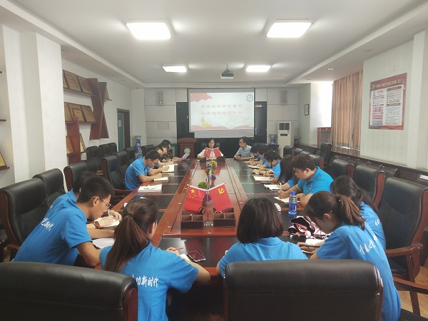 7月5日下午,amjs澳金沙门线路首页2019年暑期社会实践动员会在amjs澳金沙门线路首页会议室举行。本次实践活动以“禁毒防艾助推扶贫攻坚”为主题展开。党总支副书记韩文霞、团总支书记王心、带队老师李周、辅导员李佳以及暑期社会实践的所有成员参加此次会议。会议由团总支书记王心主持。