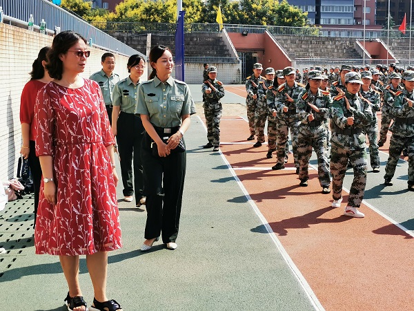 接下来,耿潇潇书记发表讲话。她说,军事训练是培养大学生集体主义意识和团队精神的重要实践手段,是提高大学生思想政治觉悟,激发爱国热情,增强国防观念的重要一课,同时也是大家成长成才的重要经历。希望大家在训练中保持“敢挑战、练意志”的状态,持续保持高昂的状态投入到军训整个环节中。