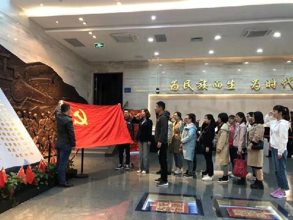 通过讲解员细致的讲解,在每一件展品前驻足停留,仔细观看,用心感悟,使在场的党员干部更加深了对“西迁精神”的理解,也深深感受到了老一辈知识分子义无反顾为西部发展、国家建设奉献的智慧和力量。随后,全体教师党员在支部书记霍健的带领下进行了重温入党誓词仪式。