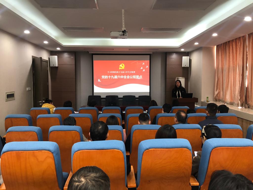 11月25日,amjs澳金沙门线路首页在学院报告厅通过专题党课的形式学习贯彻党的十九届六中全会精神。此次党课由院长孙静院长主讲,全体教师党员参加了党课。
