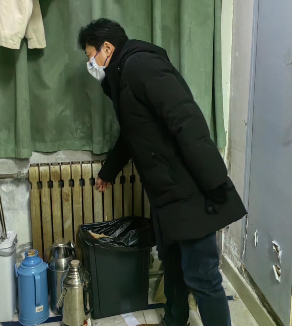 任向明书记与学生亲切交流 任向明书记了解学生寝室供暖情况