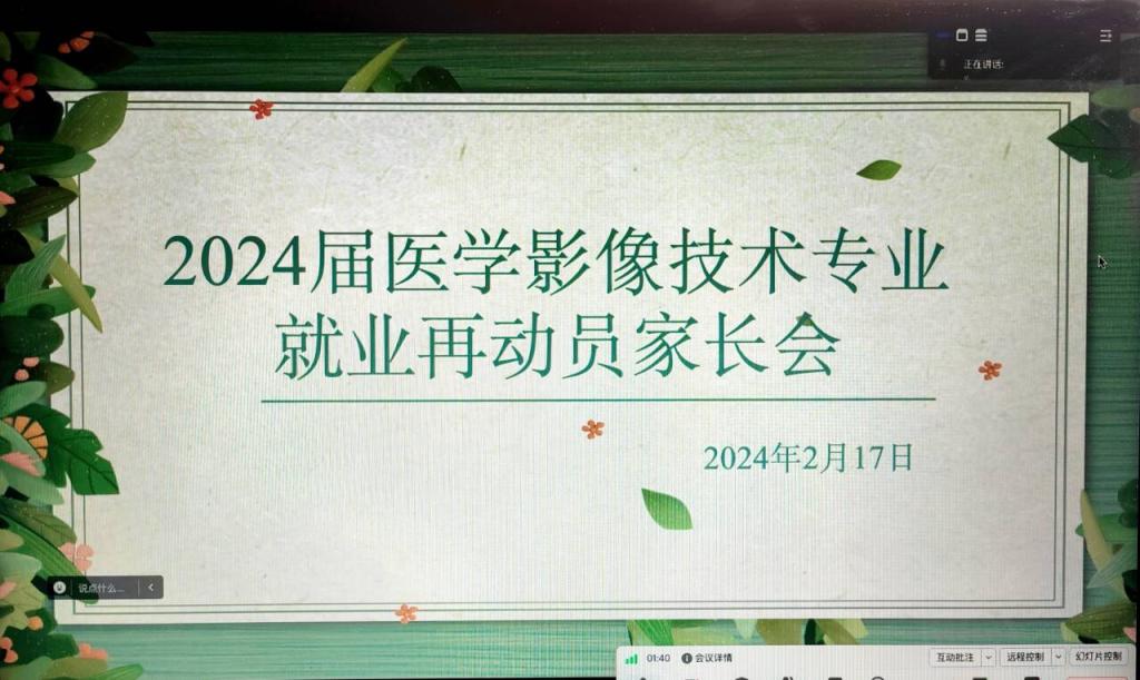2月16日,毕业班辅导员刘向锋主持召开2019级医学影像学专业毕业生就业动员家长会。内容涉及6个方面,第一,介绍了就业季的主要时间点;第二,分析了医学影像学专业的就业形势和就业政策;第三,分析往年的就业率;第四,详细分析当前毕业生的就业现状及心态;第五,针对考研学生和就业学生分别给出建议;第六,给家长五个方面的建议。最后,刘向锋和参会的家长进行互动,解答了家长关心的问题。