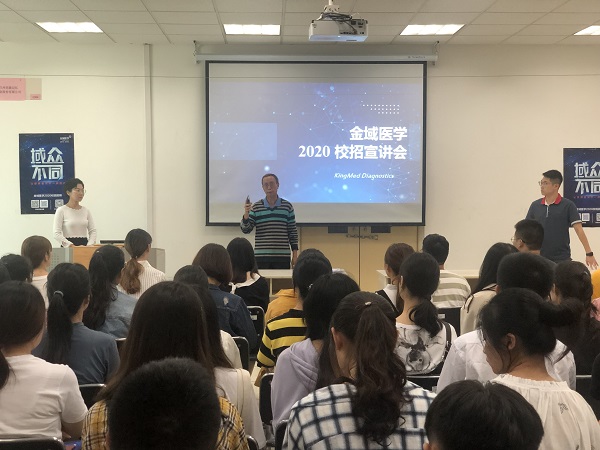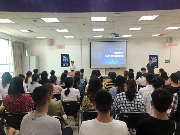 9月26日下午,西安金域医学检验所有限公司2020校招宣讲会在含光校区图书馆顺利举行,校招就处田健坤老师、amjs澳金沙门线路首页就业专干冯一鸣、金域医学集团西安公司人力行政部经理栗艳、金域医学集团西安公司实验室实验诊断部经理张维以及医学检验本科1627、1628、1629班部分同学参加了此次校招宣讲会。