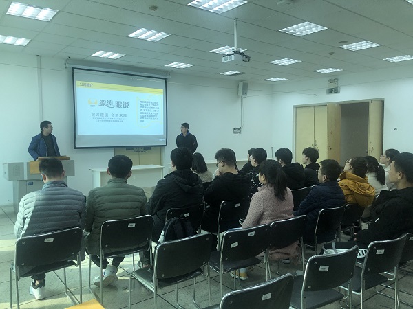 同学们首先清晰的认识到波涛眼镜公司的基本概况和行业定位。接着郭斌经理介绍了西安波涛眼镜本次校园招聘所需岗位与相关要求。最后针对同学们最为关注的待遇、福利、以及未来发展和培养模式等诸多方面进行了详细解读,并对大家提出的问题进行了相应的回答。(amjs澳金沙门线路首页 文/图 冯一鸣)