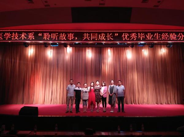 (医学技术系)2016年6月16日晚在未央校区学术报告厅召开了医学技术系检验专业“聆听故事,共同成长”优秀毕业生经验分享会。我系往届毕业生医学检验技术0716班刘亚楠同学、医学检验0906班李定杰同学和应届毕业生医学检验专业1214班李娜同学进行了求职就业经验的分享。医学技术系学生科长吕宝、团总支书记魏慧、就业专干郭璞、辅导员万婧媛、刘向峰、李周及2013级、2014级医学检验技术专业的全体学生参加了大会。会议由吕宝老师主持。
