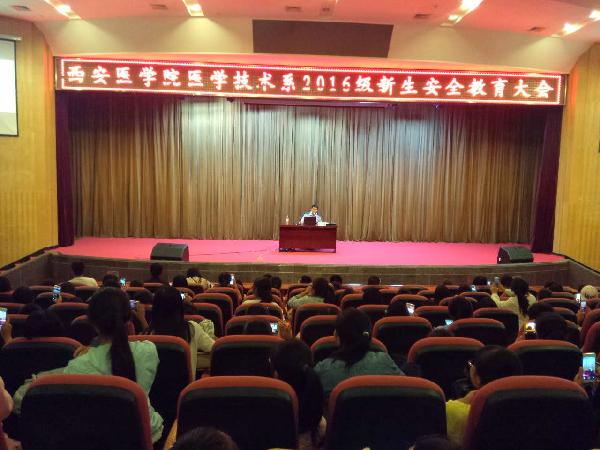9月22日晚7点,医学技术系在报告厅召开2016级新生安全教育大会。本次大会邀请校保卫处治安科治安管理专员常大林老师主讲,参加大会的有2016级新生班辅导员李周、万婧媛老师和2016级新生。大会由系学生科吕宝老师主持。