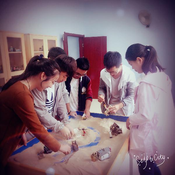 本次团体体验活动,首先采取了叙事的方式让学生介绍了自己的姓名及其所赋予的小故事,采用这一视角打开了认识自我的另一种方式,同时加强了学生之间彼此的了解与情感的联结。接着,周老师向参加活动的班委介绍了沙盘室的设备,包括沙盘、沙具等,带领学生感受沙子时,让学生谈谈自己的体会。随后,周老师引导学生寻找与沙具之间的情感联系,从沙具的选择当中,学生们谈到了自己的很多故事以及生活的经历。最后,在大家的协作下,完成了沙画作品,通过在沙盘中的活动,让学生体会到他人的感受以及沟通的重要性和方式的差异性,特别是学会面对面交流中所产生的摩擦。