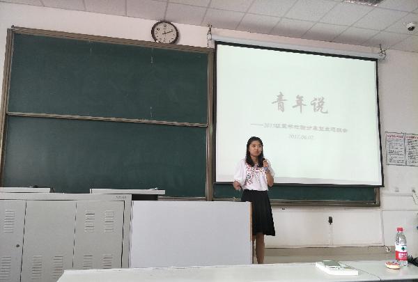 “青年说——分享型主题班会”将以系列形式开展,之后将重点从学生科研经历、学生集体活动感受、学业励志故事等方面,邀请同学讲述自己的心路历程,进行成果分享与展示。