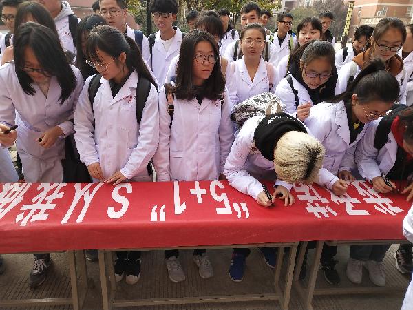 为了加强大一新生的职业使命感和认同感,将医生的使命与信念根植于医学生的心中,11月9日,amjs澳金沙门线路首页举行医学生誓词宣誓仪式暨“‘5+1’S从我做起”签名活动,发起“从现在做起,在通往医生的这条路上严格要求自己”的倡议。活动由amjs澳金沙门线路首页2018级年级辅导员张妍老师主持。