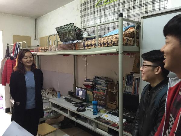 (医学技术系)2017年3月22日下午,医学技术系党总支副书记耿潇潇、学生科科长吕宝、团总支书记魏慧以及专职辅导员李周等一行7人对学生公寓2号、7号楼进行了卫生、安全检查。检查以党员宿舍为重点检查对象,目的是将我系“党建进公寓”品牌活动的骨干力量发展壮大。