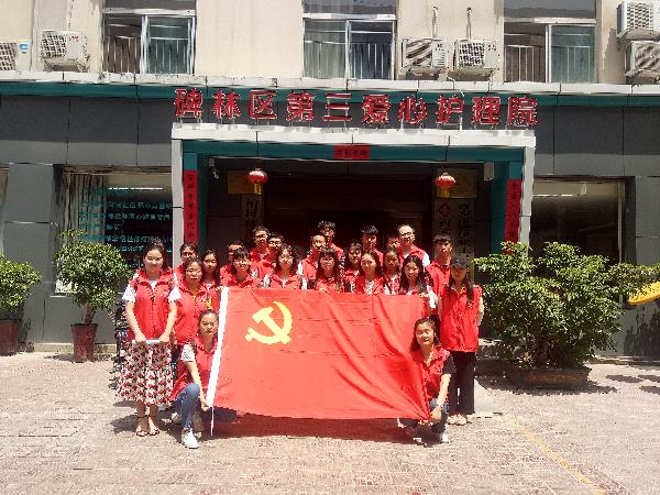 2018年5月13日早晨8点30分,在医学技术系馨艺志愿者服务队带领下,系学生党员志愿者们前往西安碑林区第三爱心护理院参加母亲节志愿服务活动。