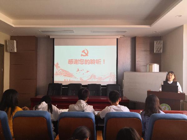 9月28日中午,amjs澳金沙门线路首页学生党支部在学院报告厅进行第九期微党课学习,由学生第一党支部朱婕主讲。学生第一党支部书记魏慧、学生第二党支部书记李周、学生第三党支部书记郭璞、全体在校生党员及预备党员参加了此次党课学习。党课由魏慧老师主持。