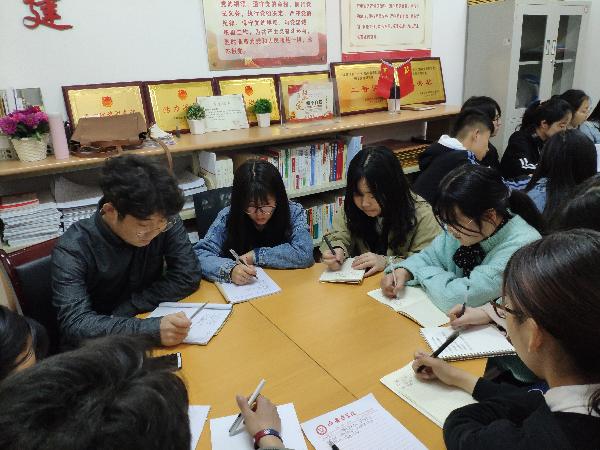 首先,由刘苏函为宣讲成员介绍“小红砖”团干部宣讲团备课内容和形式、讲稿内容和格式、讲稿审核要点、月工作计划、月工作总结等材料的整理和收集。其次,毛为谊为宣讲团成员讲解宣讲的技巧、宣讲的仪容仪态、宣讲过程的注意事项。最后,团总支以“新时代新青年”为主题,让宣讲团成员提前准备讲稿,分三个小组进行讨论、集体备课、并进行试讲,随后大家进行点评并提出意见。以孙福馨同学为代表的第一组用行动为我们阐述宣讲的严肃性,以殷鸿燕同学为代表的第二组准备充分,宣讲过程中内容层次分明,事例生动有趣。以闫沐三同学为代表的第三组用流利的宣讲和具体的事例赢得了大家的掌声。